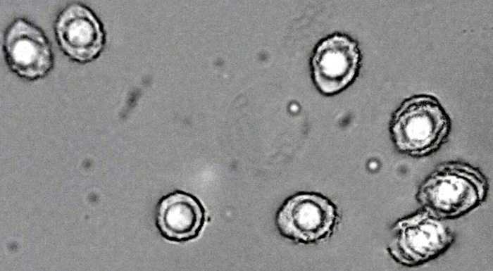 Sporen: ca. 6,4-8 x 4,8-5,6 oval/zitronenförmig, warzig