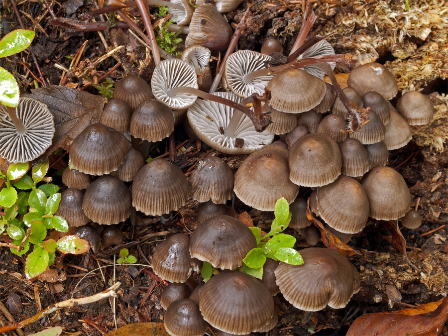 Mycena stipata | Viersporiger Nitrat-Helmling | |